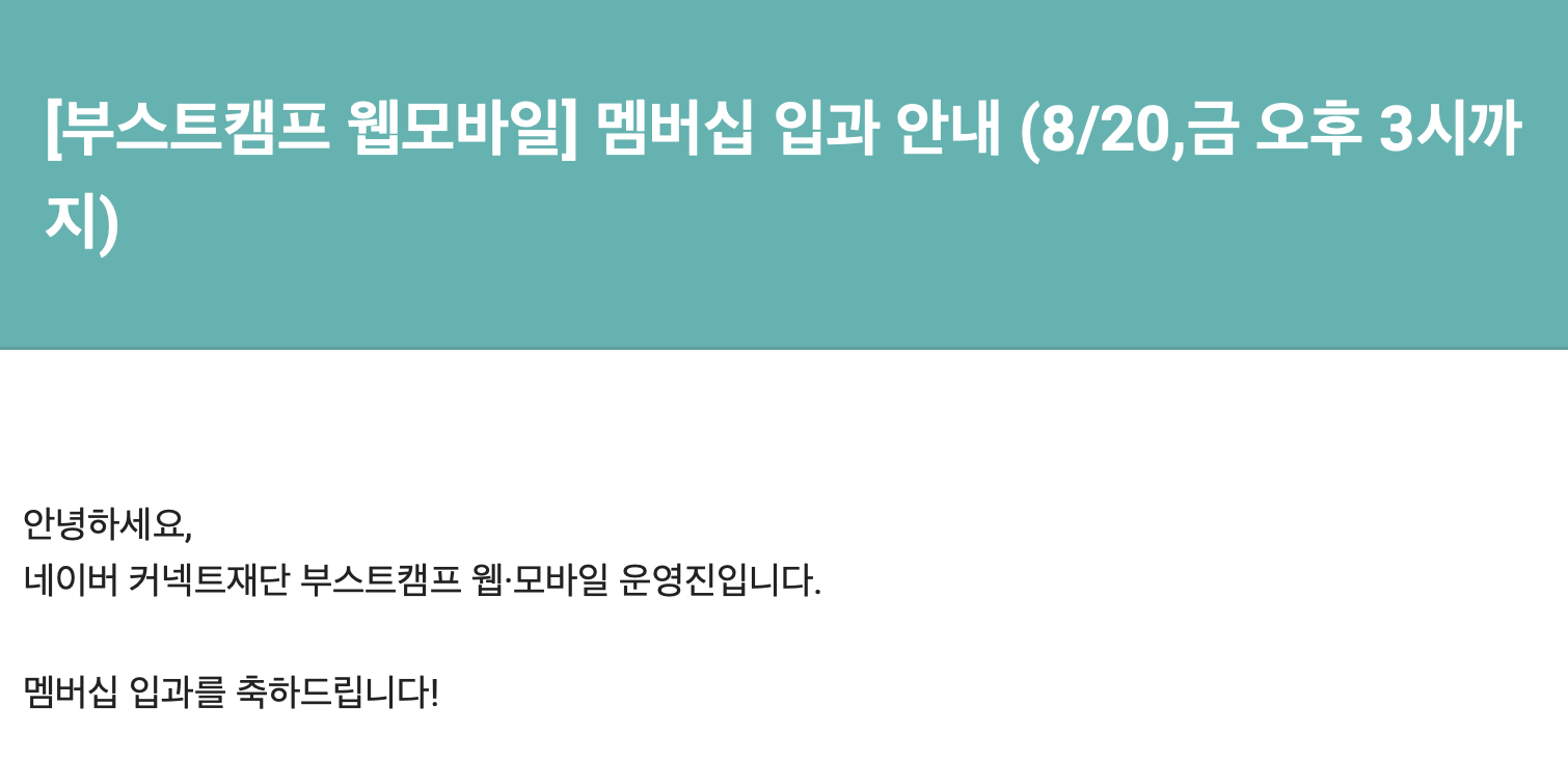 부스트캠프 웹 풀스택 6기 멤버십 합격 챌린지에 입과한 모든 캠퍼가 멤버십에 입과 하는 것은 아니다. 특정 기준으로 멤버십에 입과할 자격을 심사한다. 챌린지 과정 동안 최선을 다했고, 멤버